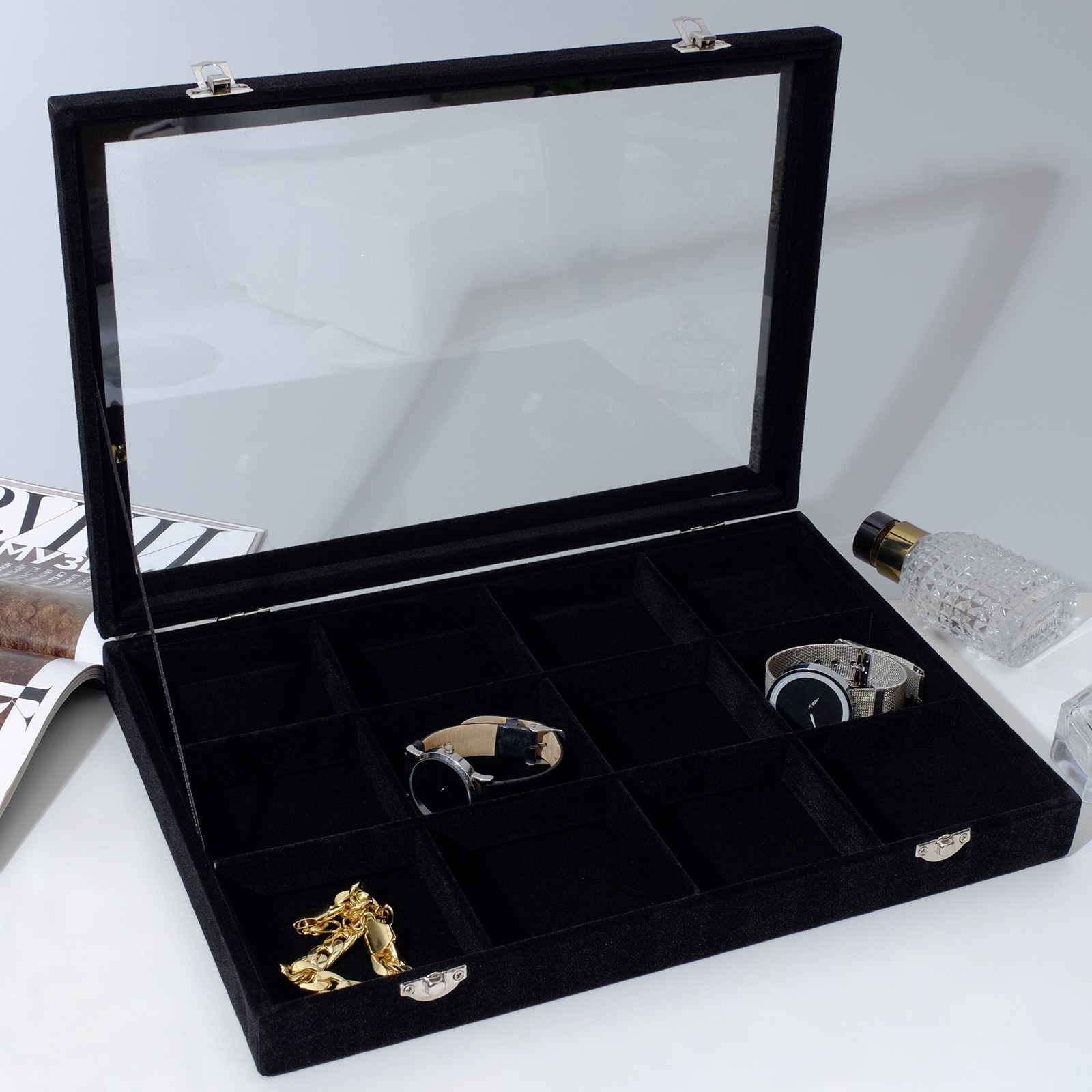 Планшет для бижутерии с крышкой 12 ячеек 350 мм (черный)